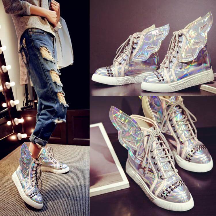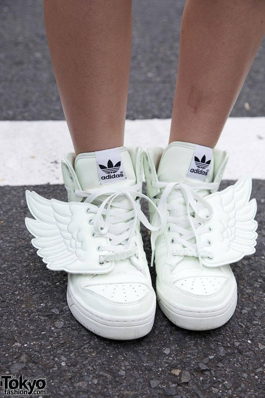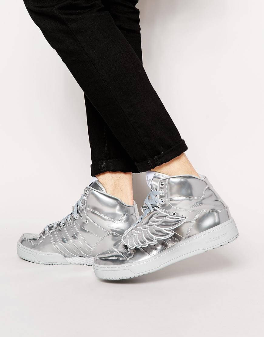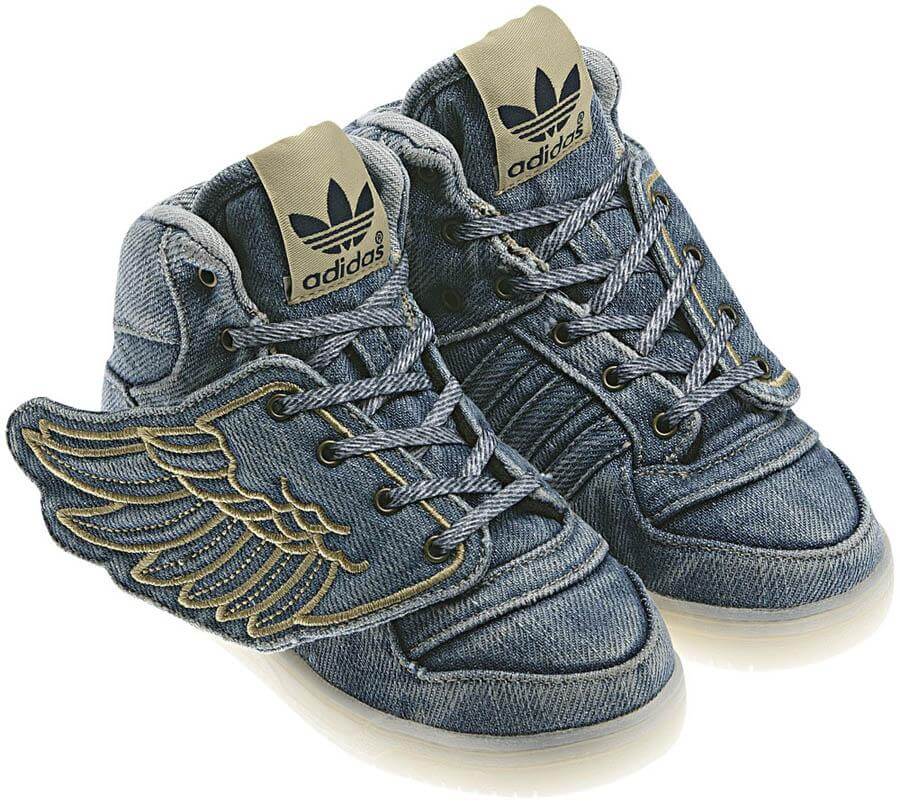 Go for jeans that show the ankle bone. Ankle cut jeans with the Adidas Wings shoes brings out a great look that is an all-time fashion attraction. Show off that ankle bone and let others marvel at your great fashion sense.