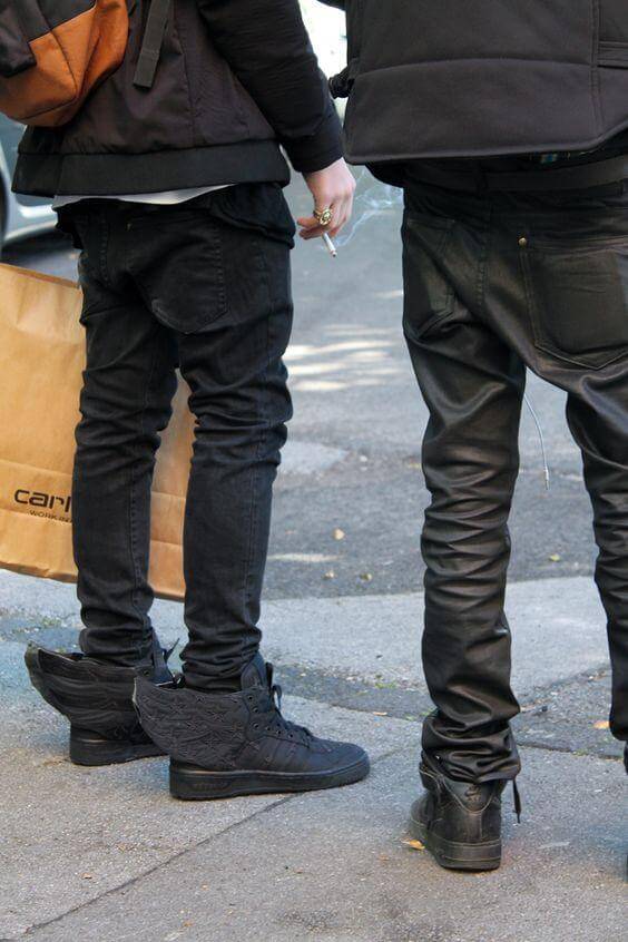 Adidas Wings shoes paired with slim jeans for men bring out a fashionable look. Slim jeans work best because they are not too baggy nor too fitting, just the right fit. They are comfortable and let you reveal the entire outline of your Adidas Wings shoes. Try this pairing for the best results.